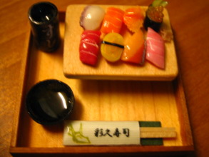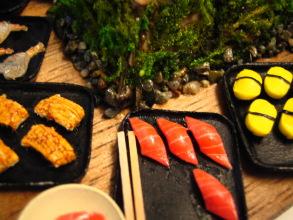 | 寿司ダイニング テーブルサイズ 11×9cm 寿司トレイサイズ 1,9×2,2cm |