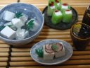 | 京豆腐づくし 豆腐田楽 冷奴 豆腐生春巻 冷酒 |