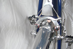 チェーンステーの半分・シートステーの蓋・ヘッドラグ(上下)・ホーククラウン、のみメッキを残して、後はブルー