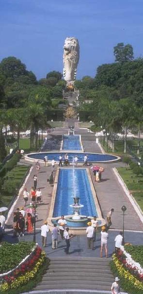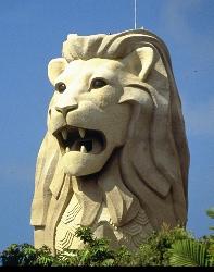場所 頭はライオン、体は魚という奇妙な象が立っている公園。 この像は、このシンガポールのシンボル。 ←シンボルのマー・ライオン |
