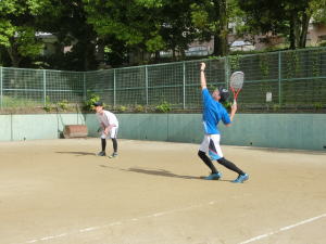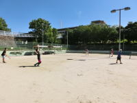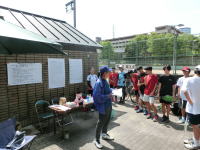 前日の大雨の後、コートの水たまりを選手が8時から集合し、コート整備に汗をかきました。そのため、試合時間が短くなり、試合のゲーム数を縮小し、大会を実施。