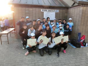 天候が心配されましたが、男女とも熱戦が展開され、決勝戦はファイナルゲームの攻防が展開され17時ジャストに終了するという熱い一日となりました。精華西中の先生から麦茶(ペットボトル)が全員に提供され感謝の一日でもありました。
