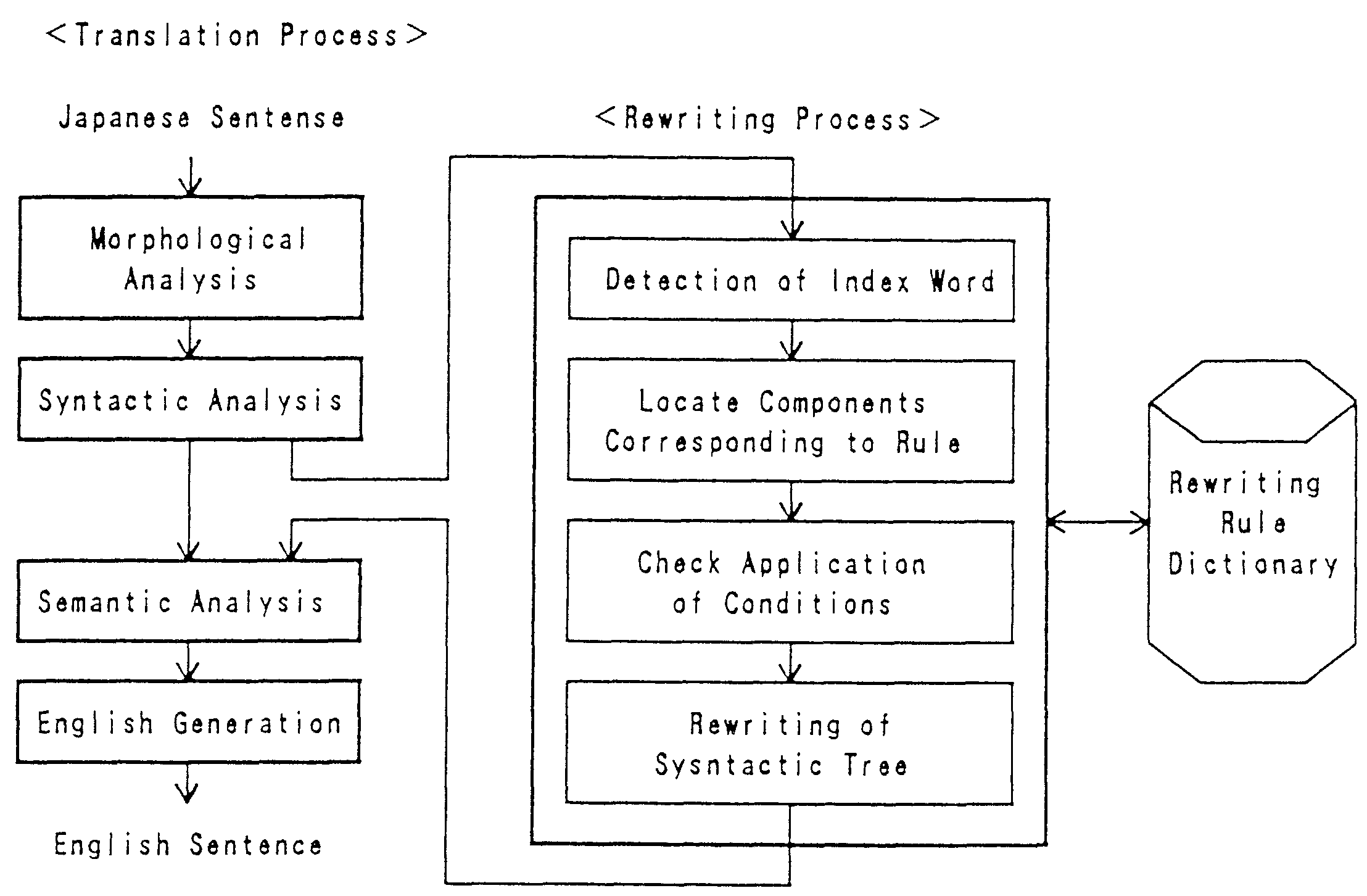 The translation process consists of several phases, such as morphological, syntactic, semantic analysis and other phases. Rewriting at too early a phase will sometimes cause an undesirable reaction because of the lack of analytical information. Conversely, rewriting after analysis has progressed significantly will risk diminishing the effects of ambiguity reduction in successive analyses.