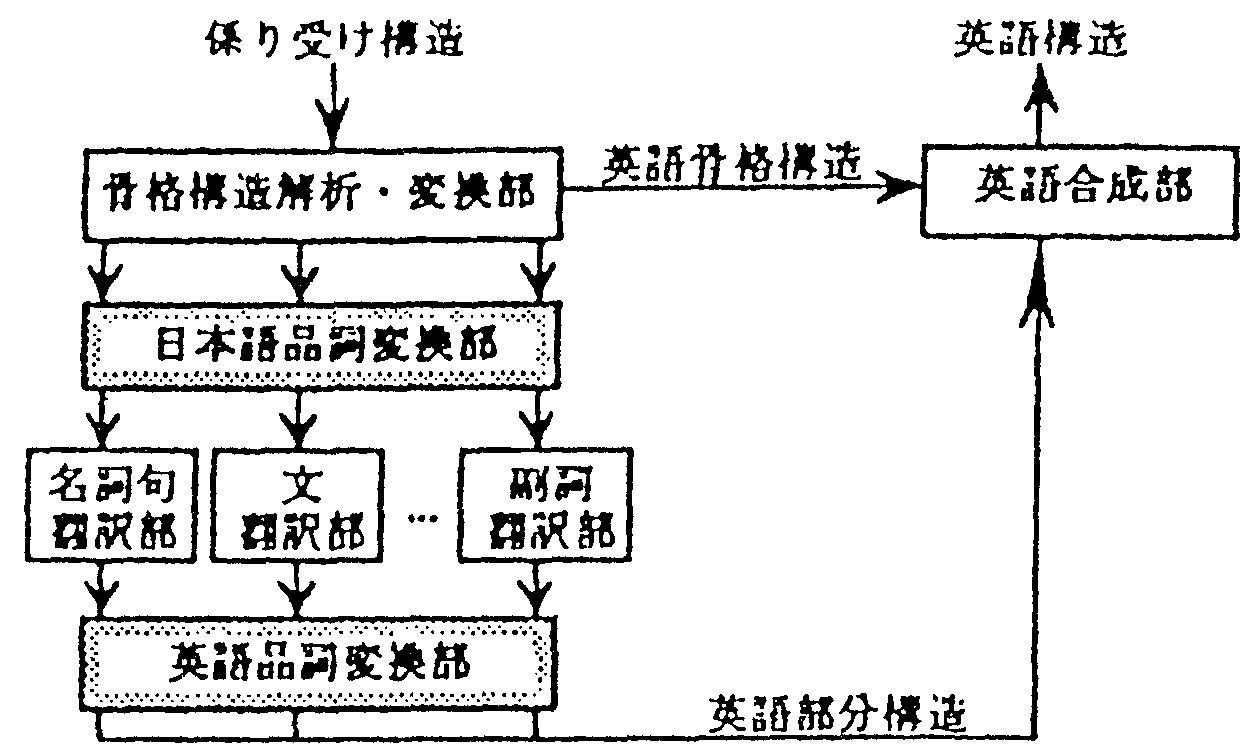 これらの品詞変換は常に適切とは限らず、 例えば複雑な構造の従属節を名詞句に無理に変換してもわかりにくい訳文が得られてしまう。 品詞変換が困難な場合には すべての翻訳を意味解析型翻に任せて直訳の訳文を出力することが可能であるから、 無理な変換はしない方針で設計を進めた。