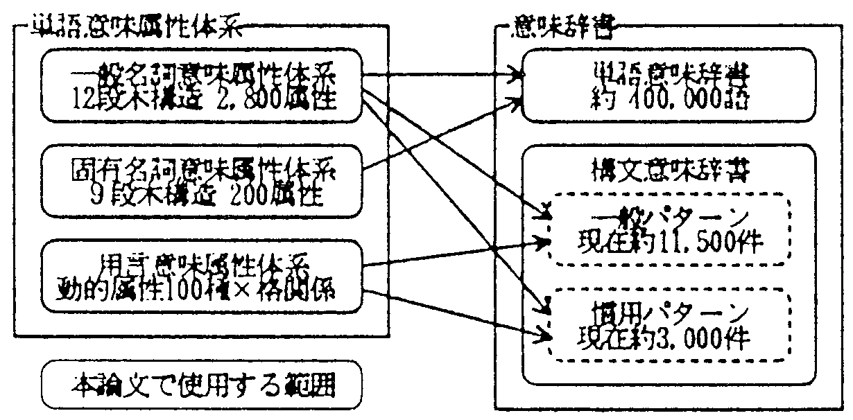 ALT¤Î·ë¹ç²Á¥Ñ¥¿¡¼¥óµ½Ò¤ÎÏÈÁȤߤϡ¤¿Þ£±¤Ë¼¨¤¹¤è¤¦¤Ë¡¤ ÆüËܸì̾»ì¤ËÂФ¹¤ëñ¸ì°Ọ̃°ÀÂηϤȣ²¤Ä¤Î°ÕÌ£¼½ñ¡Êñ¸ì°ÕÌ£¼½ñ¡¤¹½Ê¸°ÕÌ£¼½ñ¡Ë¤«¤é ¹½À®¤µ¤ì¤ë¡£ ñ¸ì°Ọ̃°ÀÂηϤϡ¤£³¼ïÎà¤Î°Ọ̃°ÀÂηϤ«¤é¹½À®¤µ¤ì¤ë¤¬¡¤ ·ë¹ç²Á¥Ñ¥¿¡¼¥ó¤Îµ½Ò¤Ë¤Ï¡¤¤½¤Î¤¦¤Á¤Î°ìÈÌ̾»ì°Ọ̃°ÀÂηϤ¬»ÈÍѤµ¤ì¤ë¡£ ¤³¤ì¤Ï¡¤ÆüËܸì̾»ì¤Î°Ọ̃Ū¤ÊÍÑË¡¤òÌó2,800¼ï¤Î°À̾¤Çɽ¸½¤·¡¤ ¤½¤ì¤é¤ÎÁê¸ß¤Î°Ọ̃Ū´Ø·¸¤ò12ÃʤÎÌÚ¹½Â¤¤ËÀ°Íý¤·¤¿¤â¤Î¤Ç¤¢¤ë¡£ ñ¸ì°ÕÌ£¼½ñ¤Ç¤Ï¡¤Ã±¸ìÌó40Ëü¸ì¤Î»ý¤Ä°ÕÌ£¡Ê£±Ã±¸ì£±¤Ä°Ê¾å¡Ë¤¬Ã±¸ì°Ọ̃°À¤òÍѤ¤¤Æ µ½Ò¤µ¤ì¤Æ¤¤¤ë¡£ ¤Þ¤¿¡¤¹½Ê¸°ÕÌ£¼½ñ¤ÏÆüËܸì¤Î·ë¹ç²Á¥Ñ¥¿¡¼¥ó¤È¤½¤ì¤ËÂбþ¤¹¤ë±Ñ¸ì¤Î¹½Ê¸¥Ñ¥¿¡¼¥ó¤ò¥Ú¥¢¤È¤·¤Æ »ý¤Ä¡£ ¤³¤ì¤é¤Î¼½ñ¤Ï¡¤¹½Ê¸²òÀÏ·ë²Ì¤Î¹Ê¤ê¹þ¤ß¡¤Æ°»ì¤ÎÌõ¸ì¤ÎÁªÂò¡¤ ̾»ìÌõ¸ì¤ÎÁªÂòÅù¤Î°ÕÌ£²òÀϤ˻ÈÍѤµ¤ì¤ë¡£