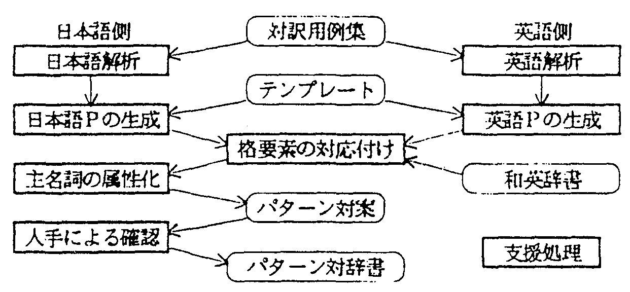Æü±Ñµ¡³£ËÝÌõÍѤΥѥ¿¡¼¥óÂФι½Â¤¤Ï¤½¤ÎÂçȾ¤¬Ìó10¼ïÎà¤Î¥Æ¥ó¥×¥ì¡¼¥È¤Çµ½Ò¤Ç¤¤ë¤³¤È¤¬ ÃΤé¤ì¤Æ¤¤¤ë[²£Èø94]¡£ ½¾¤Ã¤Æ¡¤¤³¤ì¤ò»ÈÍѤ·¤ÆÍ¿¤¨¤é¤ì¤¿Æü±ÑÂÐÌõÍÑÎã¤ÎÃæ¤«¤éÆüËܸ즡¤ ±Ñ¸ì¦¤Î¥Ñ¥¿¡¼¥óÍ×ÁǤò»ØÄꤹ¤ì¤Ð¡¤ºÇÄã¸Â¤Î¥Ñ¥¿¡¼¥ó¤ÏÍÆ°×¤ËºîÀ®¤Ç¤¤ë¡£ ¤·¤«¤·¡¤¼Á¤¬Îɤ¯ÈÆÍÑÀ¤Î¹â¤¤¥Ñ¥¿¡¼¥óÂФòºîÀ®¤¹¤ë¤Ë¤Ï¡¤ ¥Ñ¥¿¡¼¥ó¤ÎŬÍÑÈϰϤò·èÄꤹ¤ë̾»ìÍ×ÁǤε½Ò¤¬Â礤ÊÌäÂê¤È¤Ê¤ë¡£ ¤³¤Îºî¶È¤ò»Ù±ç¤¹¤ë¤¿¤á¡¤ALT¤Ç¤Ï°Ê²¼¤Î¥³¥ó¥Ô¥å¡¼¥¿»Ù±ç½èÍý¤ò¼Â¸½¤·¤¿¡£