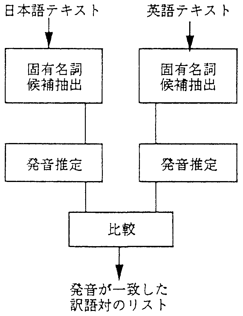 そこで、本論文では両言語テキストの発音を推定し、 その発音を比較することによって訳語対を抽出するシステムを提案する。