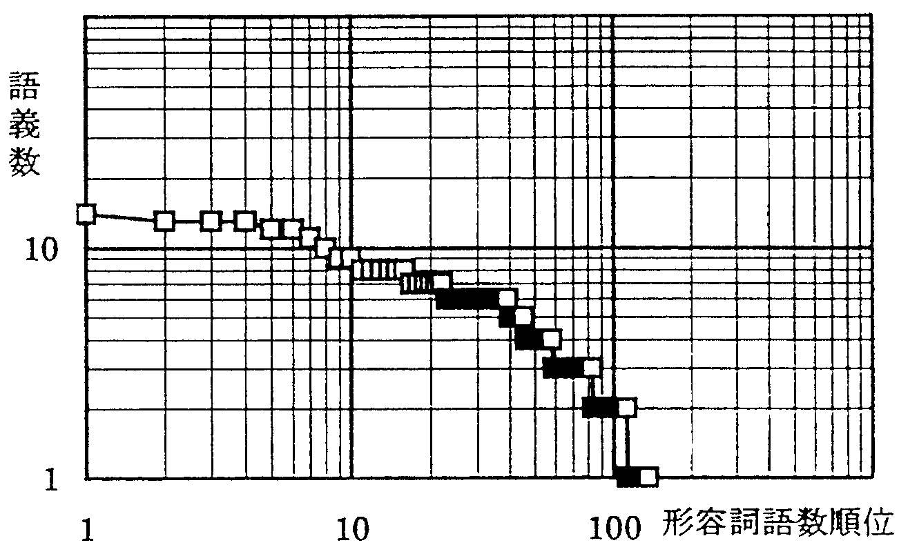 ¤½¤³¤Ç¡¤IPAL·ÁÍÆ»ì¼½ñ¤Î¸ìµÁʬÎà¤ÎÆÃħ¤ò´Êñ¤Ë¹Í»¡¤·¤¿¡£ ¸ìµÁ¿ô½ç¤Î·ÁÍÆ»ì¸ì¿ô¤ÎʬÉÛ¤ò¿Þ2¤Ë¼¨¤¹¡£ IPALư»ì¼½ñ¤Î¸ìµÁʬÎà¤ÎÆÃħ[Çò°æ96]¤ËÈæ¤Ù¤ë¤È ¸ì¿ô½ç°Ì5¡Á50¤¢¤¿¤ê¤¬ºÙ¤«¤¯Ê¬Îव¤ì¤Æ¤¤¤ë¤è¤¦¤Ê°õ¾Ý¤¬¤¢¤ê¡¤ ¤³¤ì¤¬¸ìµÁ¿ô¤ò´ð½à¤Ë¤·¤¿ÎãʸºîÀ®¤Ë±Æ¶Á¤òÍ¿¤¨¤Æ¤¤¤ë¤«¤â¤·¤ì¤Ê¤¤¡£