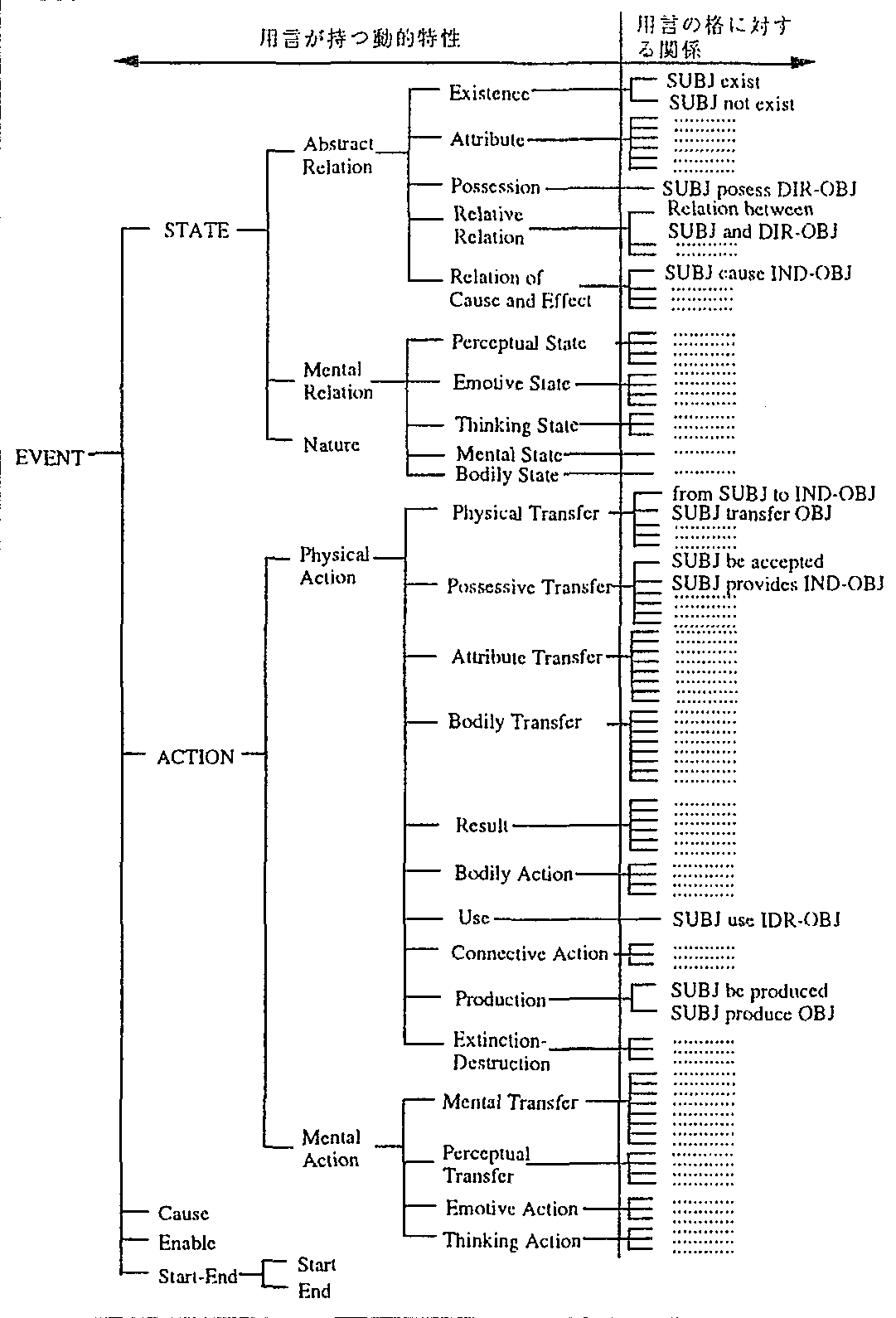 | 用言: Bodily Action Thinking Action Ernotive Action Emotive State Bodily Transfer |