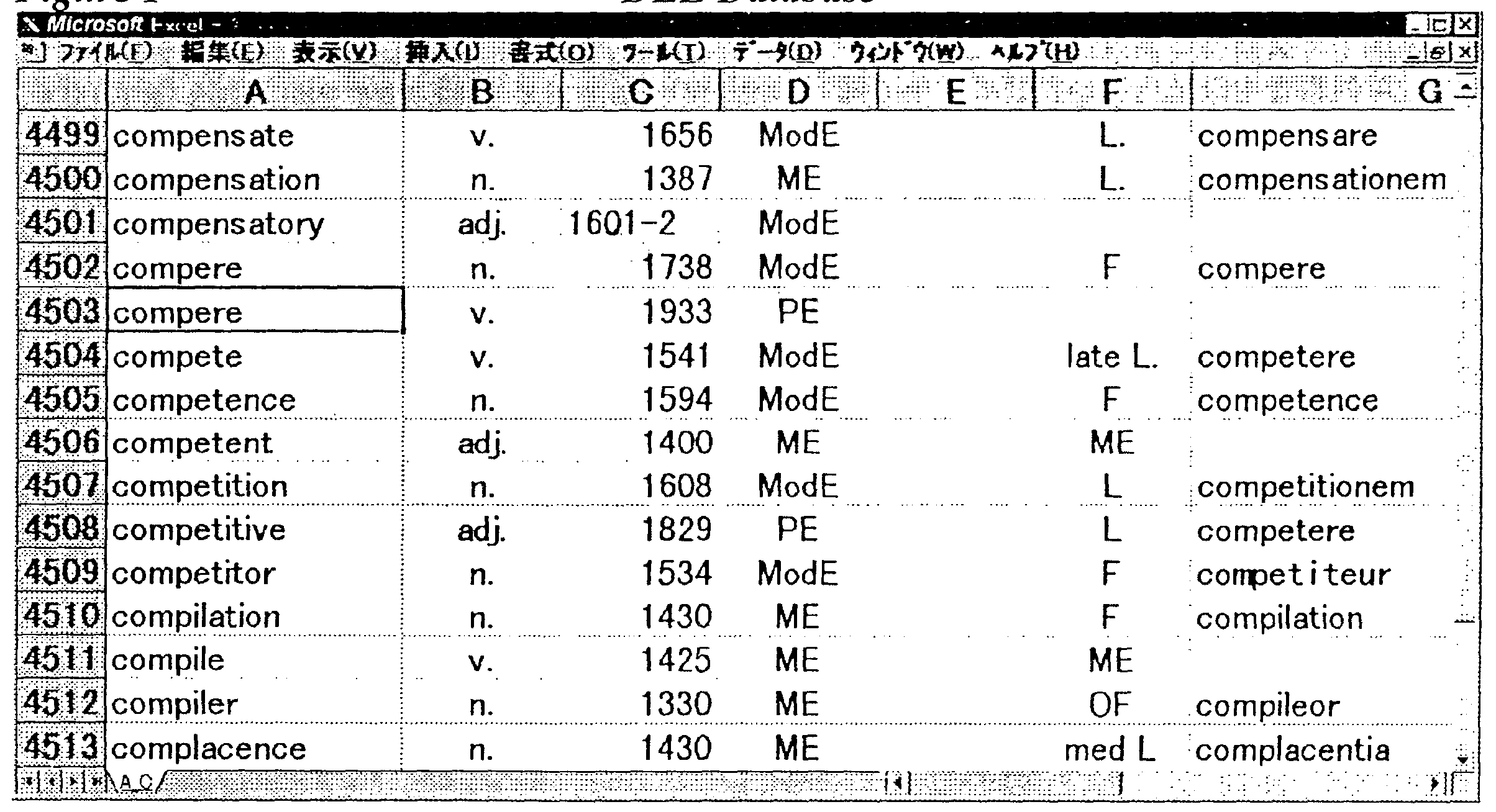 The DEE database includes a main database as shown in Figure 1 and supplementary databases of irregular verbs, postposed adjectives and affixes. Additional databases of other word classes will be incorporated.