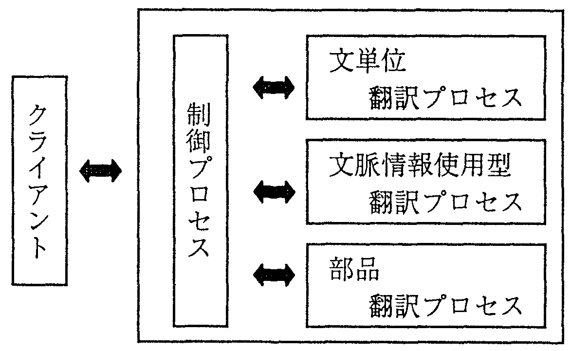 クライアントからの要求に対しては、すべて制御プロセスが受け付け、 要求に応じて適切なプロセスに振り分けて翻訳及び辞書等の環境設定を行なう。 以下、各プロセスの機能について述べる。