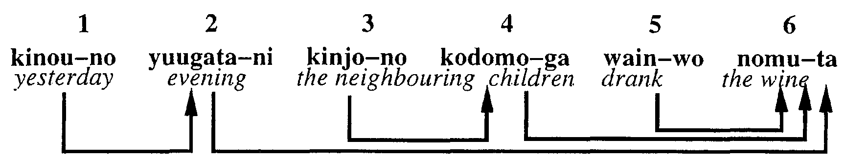 | kinou-no | yuugata-ni | kinjo-no | kodomo-ga | wain-wo | nomu+ta | ||||||