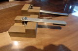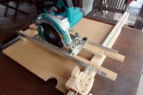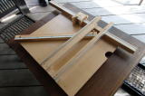 二つ目はデッキの上に置く作業台です。今までは丸いガーデンテーブルを利用していましたが、折りたためる代わりにグラグラしていて、作業には不向きだったので今回はかなりしっかりしたものを作ったようです。もちろんそれには自作の電動丸ノコ盤を載せるつもりで着々と準備をしていました。